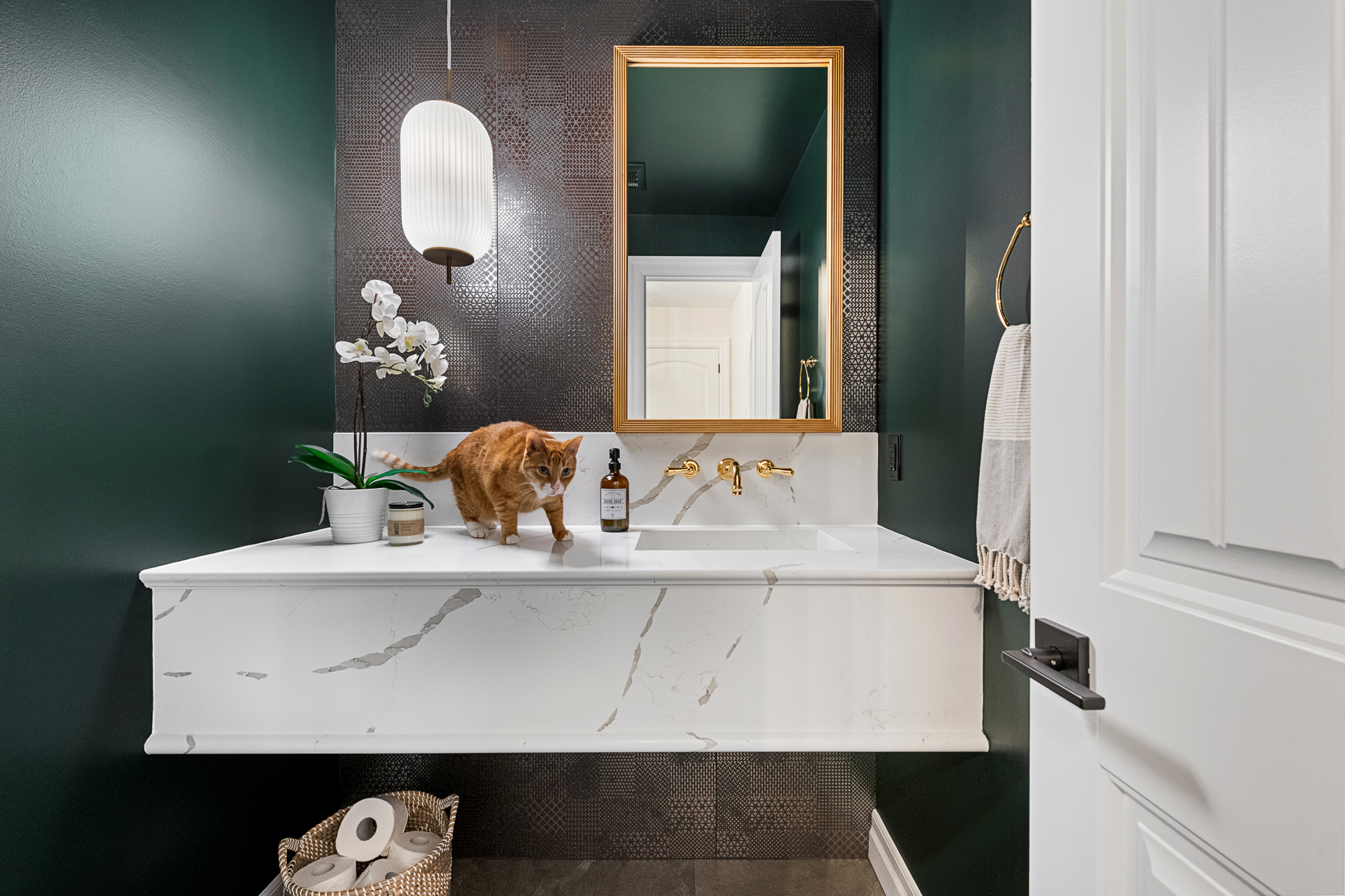 A bold, sophisticated powder room transformation defined by rich tones, elegant materials, and timeless design. We’re excited to share our Moody Luxe Powder Room Design Project. A dramatic transformation that brings depth, warmth, and sophistication to a compact space. This statement-making powder room features a custom wall-mounted stone vanity and polished gold fixtures. A moody […]
